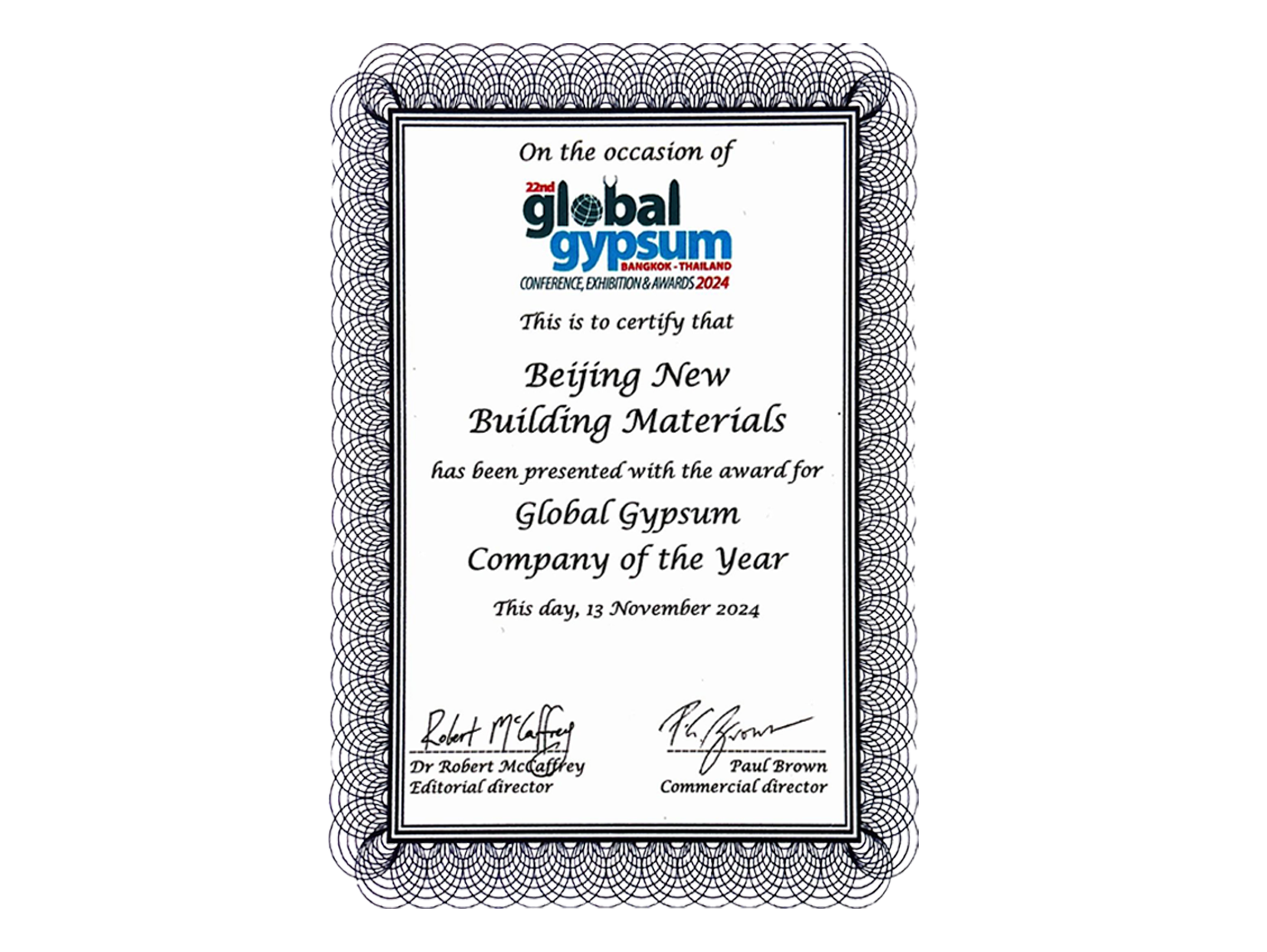两次荣获全球石膏行业突出孝顺奖并四次荣获最佳年度公司。